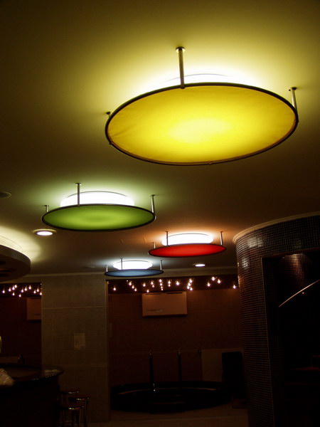 Bathhouse, ceiling hangings with birds and the lamps of the wall-hangings