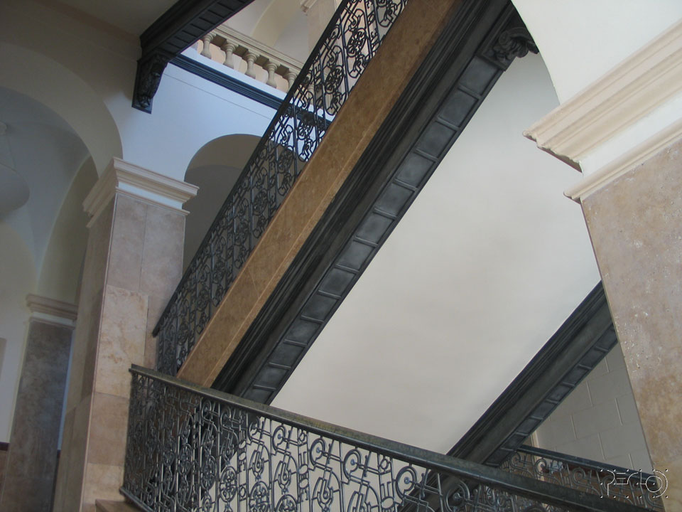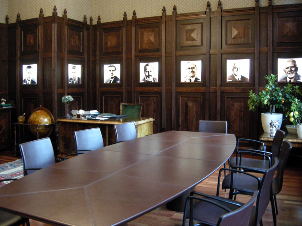 Vannak kuriózumok is pl. az 1986-ban a párizsi Eiffel torony első emeletén Magyarországot bemutató kiállítás, vagy 10 évvel később a Közlekedési Múzeumban elkészült „150 éves a Magyar Vasút” című kiállítás és Kovács Zoltán műterméből került ki az Állatkert kiállító terem építészeti terve is. Próbálom kitalálni melyik a kedvenc teremtmény, s belsőépítész ösztönöm azt súgja, ez a XÁNTUS JÁNOS Idegenforgalmi Középiskola lehet. Többször is visszatért ebbe az 1886-ban emelt épületbe. 2002-ben a hajdani kápolnából kialakított könyvtár és az oldalszárny tervezésével, tavaly pedig a Hauszmann szárny rekonstrukciójával készült el. A tanácsterem, előtér, lépcsőház funkciójának újragondolása semmi máshoz nem hasonlítható enteriőröket eredményezett. Falfülkékbe csúsztatott, rejtett világítással kiemelt XÁNTUS féle fotók klónjai lőrésszerűen bevágva a sötét falburkolatba – ilyen a körítő fal kiképzése, míg a berendezést a felújított régi szekrények és régi bútordarabok igényességével vetekedő kereskedelemben kapható, ill. egyedileg legyártott mobíliák összhangja jellemzi. Az alapítványi iskola gondnokának összeállítási rajzot adott a tervező a többrészes tárgyalóasztalról, hogy alkalomhoz, létszámhoz illő más és más formában állíttassék össze. Terjedelmi okok miatt nem írok a kétféle vastagságú kazánlemezből lézerrel kivágott, kissé már art dekos lépcsőkorlát elkészíttetésének történetéről, szakemberek előtt pl. egy zsennyei szinpózionon kiselőadást lehetne tartani belőle. Akárcsak az iskola nagyjait ábrázoló lépcsőházi ablakokról, melynek tábláiban Szőnyi István, Hajós Alfréd, Karinthy Frigyes, Gábor Dénes portréja, tevékenységi köre szolgál Hauszmané és Xántusé mellett a minden ízében, szerkesztési módjában mai grafikai megjelenítés tárgyául. Kovács Zoltán nem veszi el a társművészek kenyerét, viszont pontosan megfogalmazott vízióit mindenáron viszont kívánja látni alkotótársai munkáiban. Hiszen ezekből a részletekből tevődik össze az a kép, ami már az ő művészetére jellemző. Más talán megelégedett volna egy historizáló ólomüveg betéttel, ő azonban azt találta ki, hogy a hagyományos technikával csak egy külső keret készüljön, a mezőben viszont a savmaratott üvegre többszörösen ráégetett festék transzparenciája írja felül a fotómontázs realitását. Szintén ebben az épületben talált egy agyonfestett konzoltakarót. Gipsznek tűnt, de fémes kongásából megállapították, hogy bádogból van a díszítő motívumait már nem is mutató darab. Zoli kérésére fémtisztára kaparták, előkerültek a mustrák, azután restaurátor tanulók patinázták olyanná, hogy a diafragma lemezt borító elem újra a tartószerkezet díszévé válhatott. Amikor a hirtelen rám zúdult információ özöntől kissé kábultan botorkálok lefelé Kovács Zoltán műterméből a világörökség részének nyilvánított Andrássy útra, rég nem érzett öröm tölt el; megint találtam egy kollégát, aki ezt az örökséget belül őrzi. Gyürky András A cikk eredetileg a Magyar Iparművészet 2006/4 számában jelent meg. |