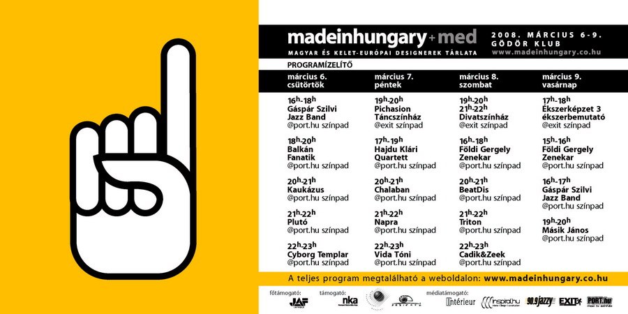 A madeinhungary tárlat idei különlegessége, hogy a magyar formatervezők mellett a med keretében bemutatkozási lehetőséget kapnak Szlovénia, Szlovákia, Lengyelország és Csehország vezető művészeti iskoláinak legelismertebb diákjai is: a négy ország ifjú tervezői négy standon mutatják be legújabb gondolataikat és azok kivitelezését.