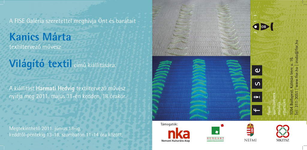 A kiállítást Harmati Hedvig textiltervező művész nyitja meg 2011. május 31-én kedden, 18 órakor.