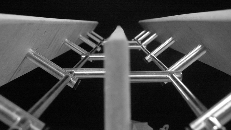 Lap szerkezetbe csavart rögzítő elemeken átfűzött pálcák által létrehozott téri rendszer, mely: